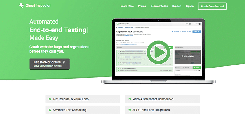Ghost Inspector is an automated browser testing tool that you can set up to test your WooCommerce store. It works using a Chrome extension that record a test scenario you create to the cloud, which you can then schedule or run continuously in the background. This is a big plus because you can set and forget.