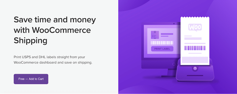 WooCommerce Shipping is a free plugin that helps you print USPS and DHLS shipping labels right from your WooCommerce dashboard. You’ll get a new Create shipping label button in the Orders section. That’s where you can print and label the box with it.