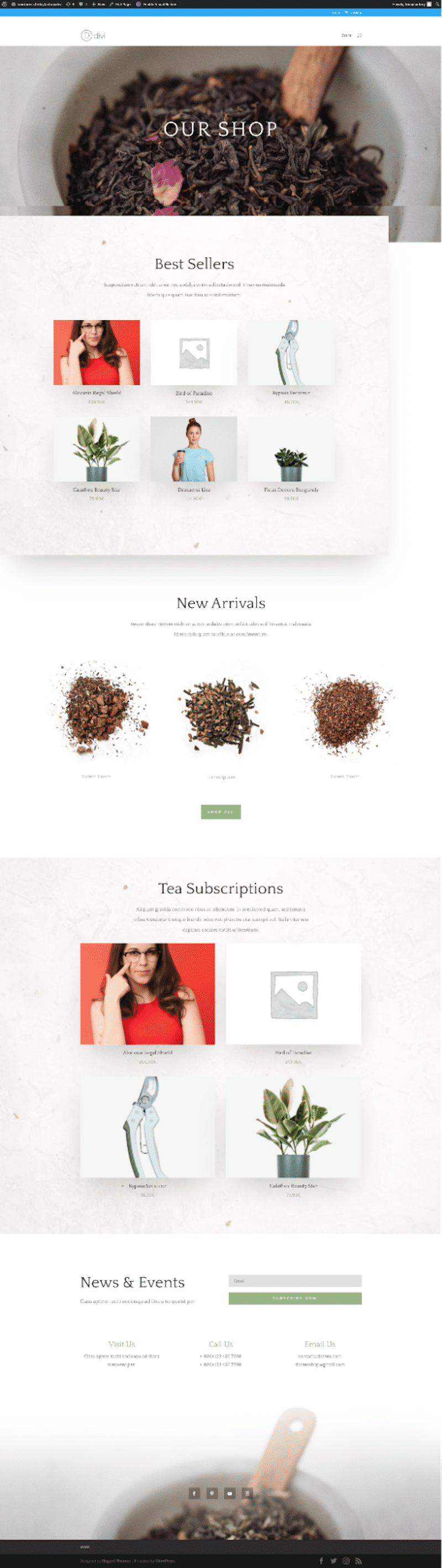 I’ve built a complete WooCommerce site for that case study using the popular Divi theme and builder. I have enhanced my shop with a few plugins coming from some of the categories mentioned previously to make the audit relevant.