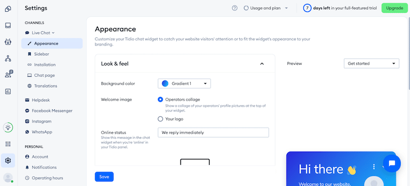 Free plans are available for small businesses with a cap of 50 conversations per month. Then it starts at 29€/month for premium live support and more advanced features such as AI chatbot. You can try the chatbot for free for up to 50 conversations; then, you’ll need a premium plan.