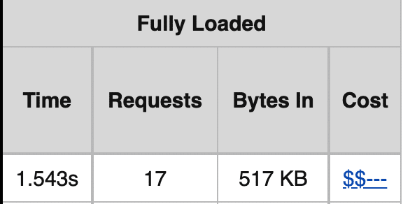 The fully loaded time and HTTP requests metrics are also very good, making sense as my page is almost empty.