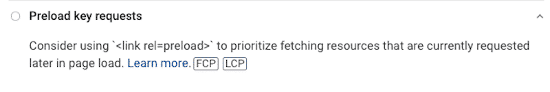 WP Rocket applies the attribute rel=”preload” which is another recommendation from PageSpeed Insights to maintain a healthy FCP and LCP as seen below: