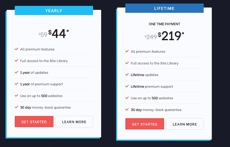 Astra also offers lifetime and yearly pricing. It starts at $47, but you’ll need the “Essential Bundle” at $137 to access the library. The best value is the “Growth Bundle” because it gives you access to many blocks and SEO add-ons as well as advanced training.
