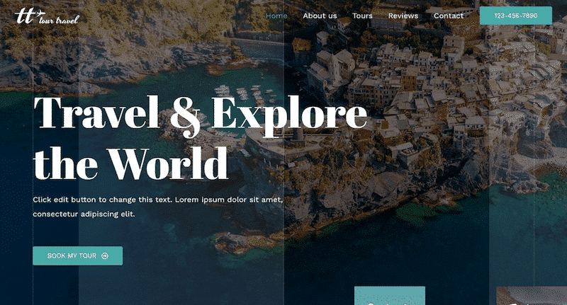 - A hero header with a background image