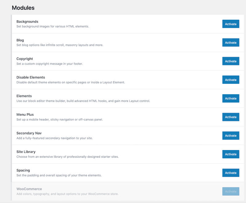 - GeneratePress more closely follows the theory of “less is more” and does offer a more minimalistic theme than Astra: everything is integrated into the WordPress interface, and when it comes to activating the advanced options, everything is very straightforward.