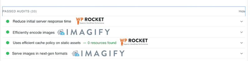 Thanks to WP Rocket and Imagify, we are now passing the PageSpeed Insights audit! We fixed all the issues flagged in the opportunities and diagnostics sections of GeneratePress.