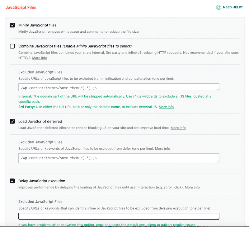 - Load JavaScript deferred and Delay JavaScript execution: these features help identify the critical and non-critical resources and let the browser download them according to the right priority.