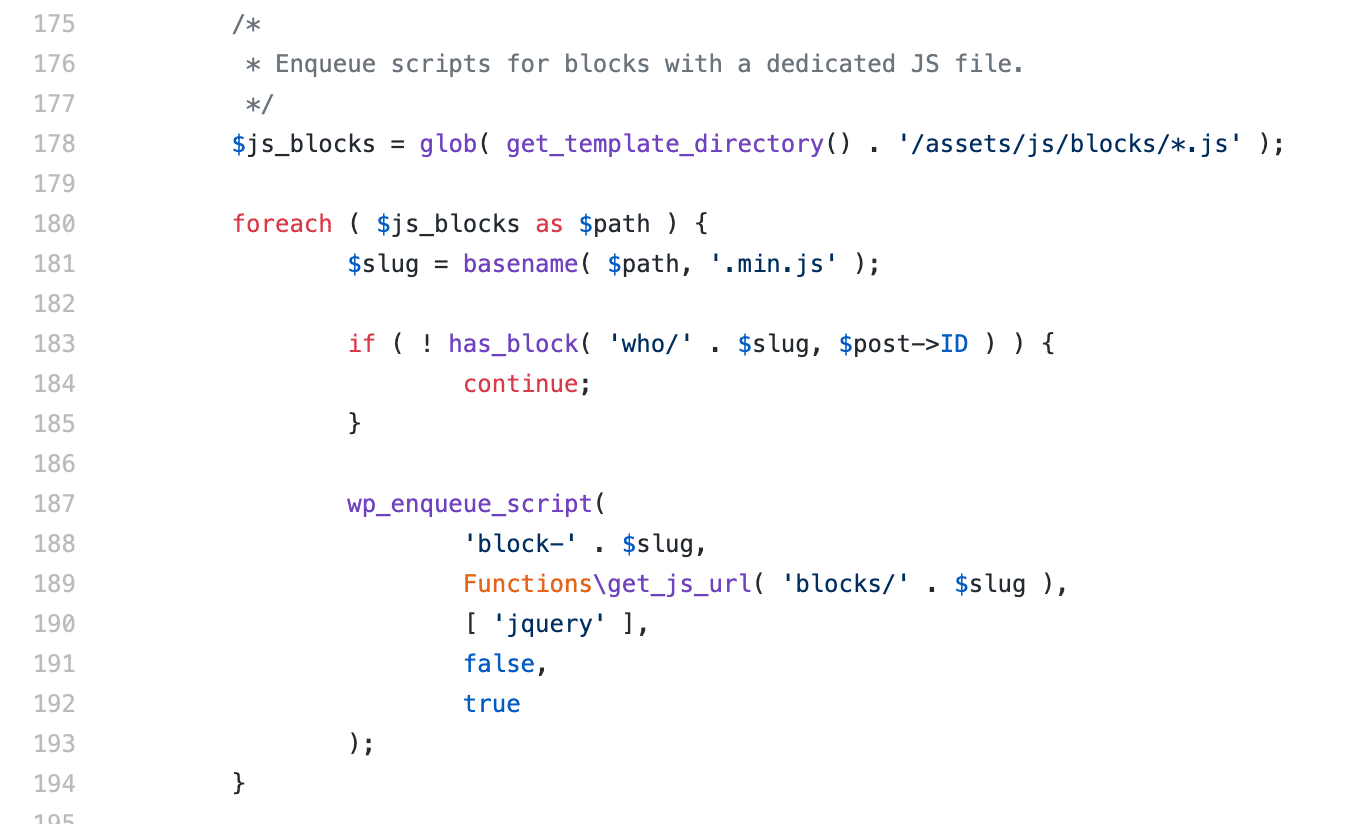 $js_blocks = glob( get_template_directory() . ‘/assets/js/blocks/*.js’ );