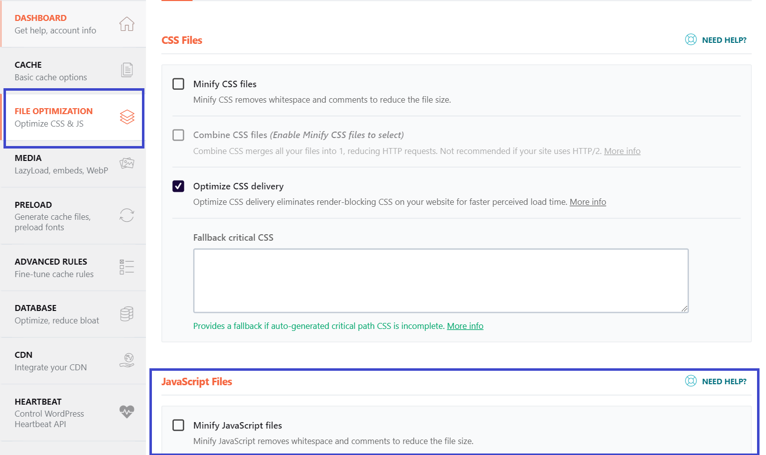 It’s a powerful option that allows you to defer JS files in no time. In the File Optimization tab, go to Load Javascript Deferred and flag the option. Pretty easy, right? You can also exclude specific JS files from being deferred.