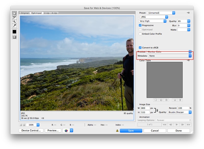 Removing Image Metadata with Photoshop