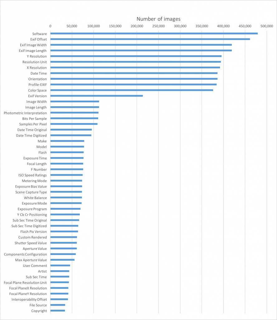 These were the 50 most common attribute stored as EXIF data: