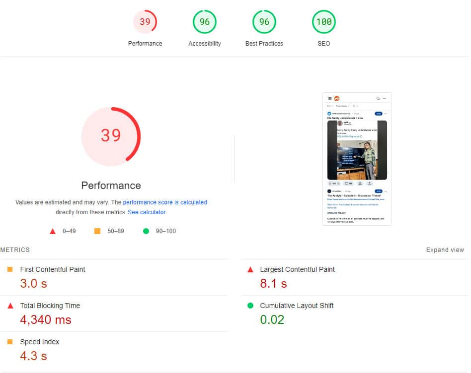 To understand that, it’s important to know that the report consists of both field and lab data. The former is collected from real-world experiences visitors had on your website as measured by Google’s Chrome browser. Lab data, on the other hand, is calculated in an environment with controlled conditions.