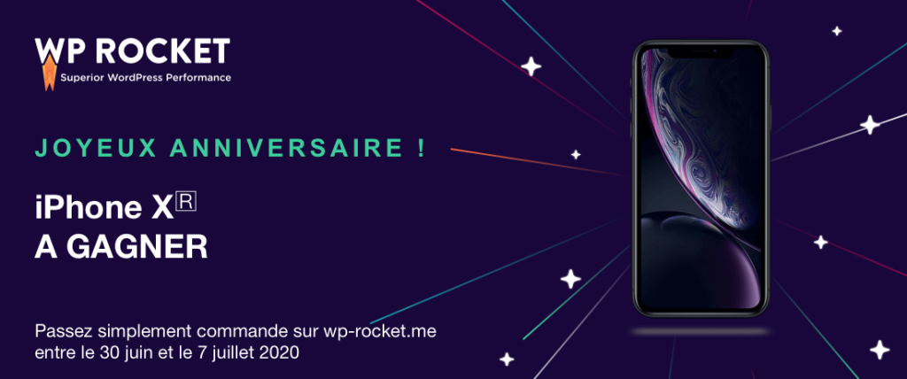 Tentez de remporter 6 mois supplémentaires gratuits sur votre licence WP Rocket et même un iPhone. Sept ans, ça n’arrive qu’une fois, ne ratez pas la fête !