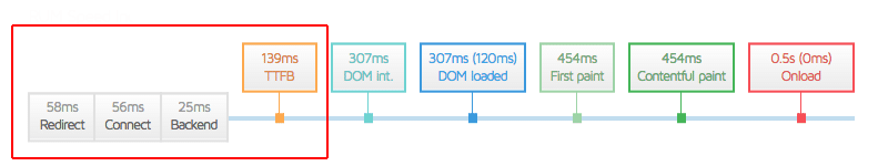 This key metric is calculated by adding up the redirect duration (the time spent sending a request to the server), the connection duration (the time spent processing and generating the response), and the backend duration (the time it takes to send the response back to the visitor’s browser).