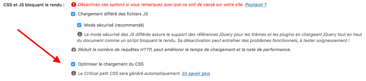 Dans WP Rocket 2.10, nous avions introduit des options pour répondre à la recommandation de Blocage de Rendu du Contenu de PageSpeed Insights. Dans 2.11, nous avons combiné l’option Charger les fichiers CSS de manière asynchrone et Critical Path CSS en une seule option, simple et dynamique : Optimiser le Chargement CSS