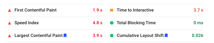 Please note that Time to Interactive has been removed in Lighthouse 10, and it’s no longer included as a Lighthouse performance metric.