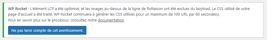 Lorsque vous activez ou mettez à jour WP Rocket 3.16, vous verrez des messages en fonction de son fonctionnement.