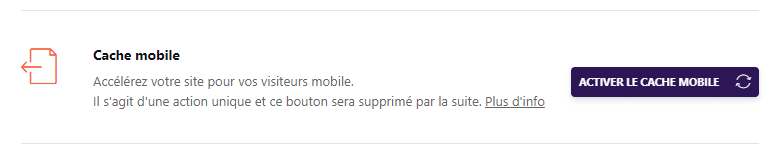 - L’option Cache mobile – la grande majorité de nos utilisateurs se sert de cette option, nous avons donc décidé de l’activer automatiquement.