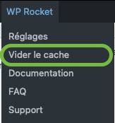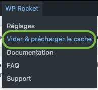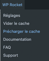 Par exemple, vous ne trouverez plus le préchargement du cache (Preload cache) dans le menu WordPress.