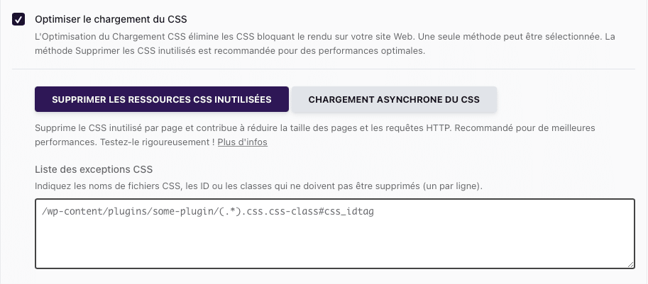 Enfin, la cerise sur le gâteau : dans la nouvelle version majeure nous avons également enlevé la mention Bêta de la “Suppression des ressources CSS inutilisées” (Remove Unused CSS). C’est l’une des options avancées les plus efficaces pour améliorer facilement les performances de votre site WordPress.