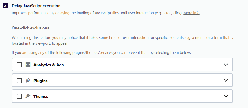 Knowing which JS to load first is not always straightforward, even with an easy feature like Delay JavaScript. Many of you asked us to make the option simpler, and we listened.