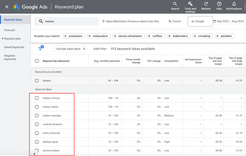 There are tools like Semrush that can tell you what to improve and which directory sites you should target to expand your coverage. For example, the caterer Le Point Gourmand should also consider AroundMe, 118000.fr or Yelp.