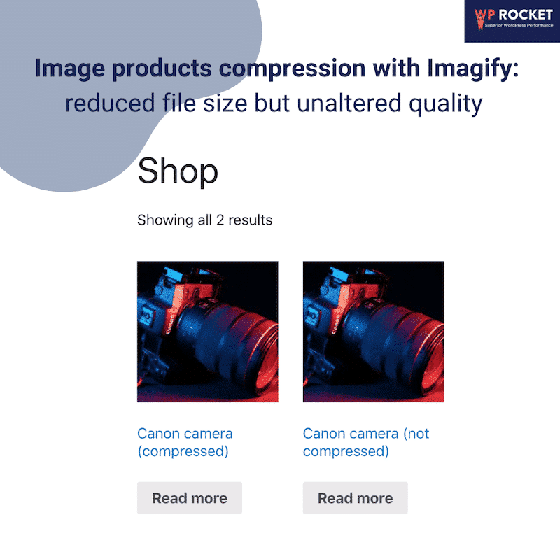 You can visually compare both products, one with an optimized image (left) and the other with the original picture. We can’t see any difference in the quality, but the file size got much smaller, which will improve the loading speed of the shop page.