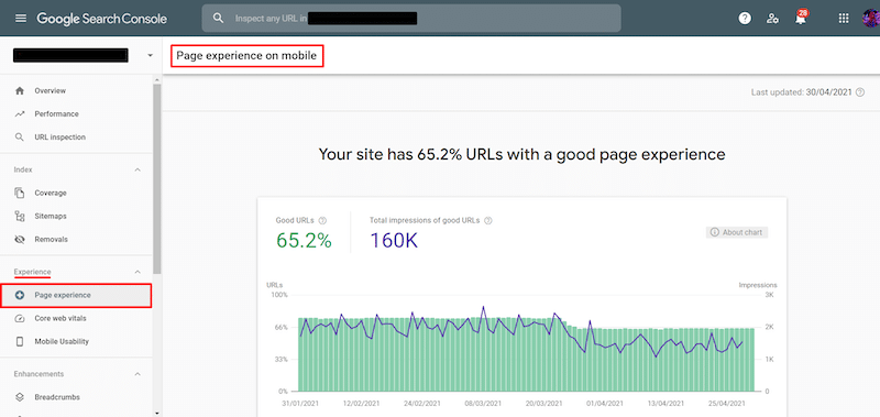 - Google Search Console – a web service created by Google that allows you to check the indexing status of your site, the search queries, and crawling errors. It identifies the technical issues that may prevent websites from being visible at their best. From Search Console, you can keep track of the performance related to the Page Experience (part of Google’s ranking algorithm) and the Core Web Vitals.