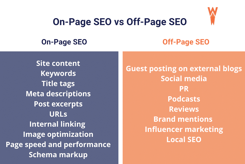 There are two types of action you can take to improve SEO on your WordPress: the first part happens on a technical level, while the second one is more about content optimization with on-page and off-page SEO. In a nutshell, this is how SEO works: