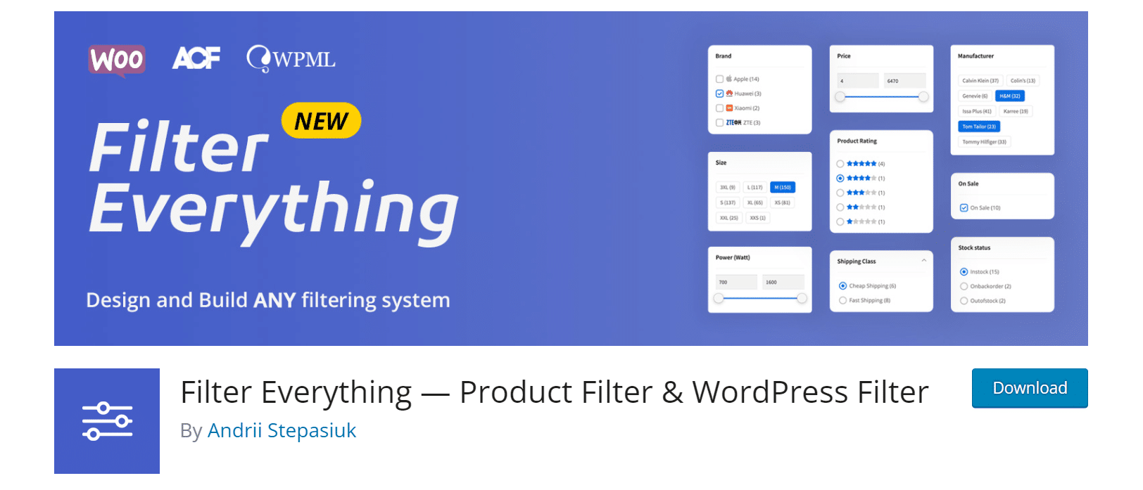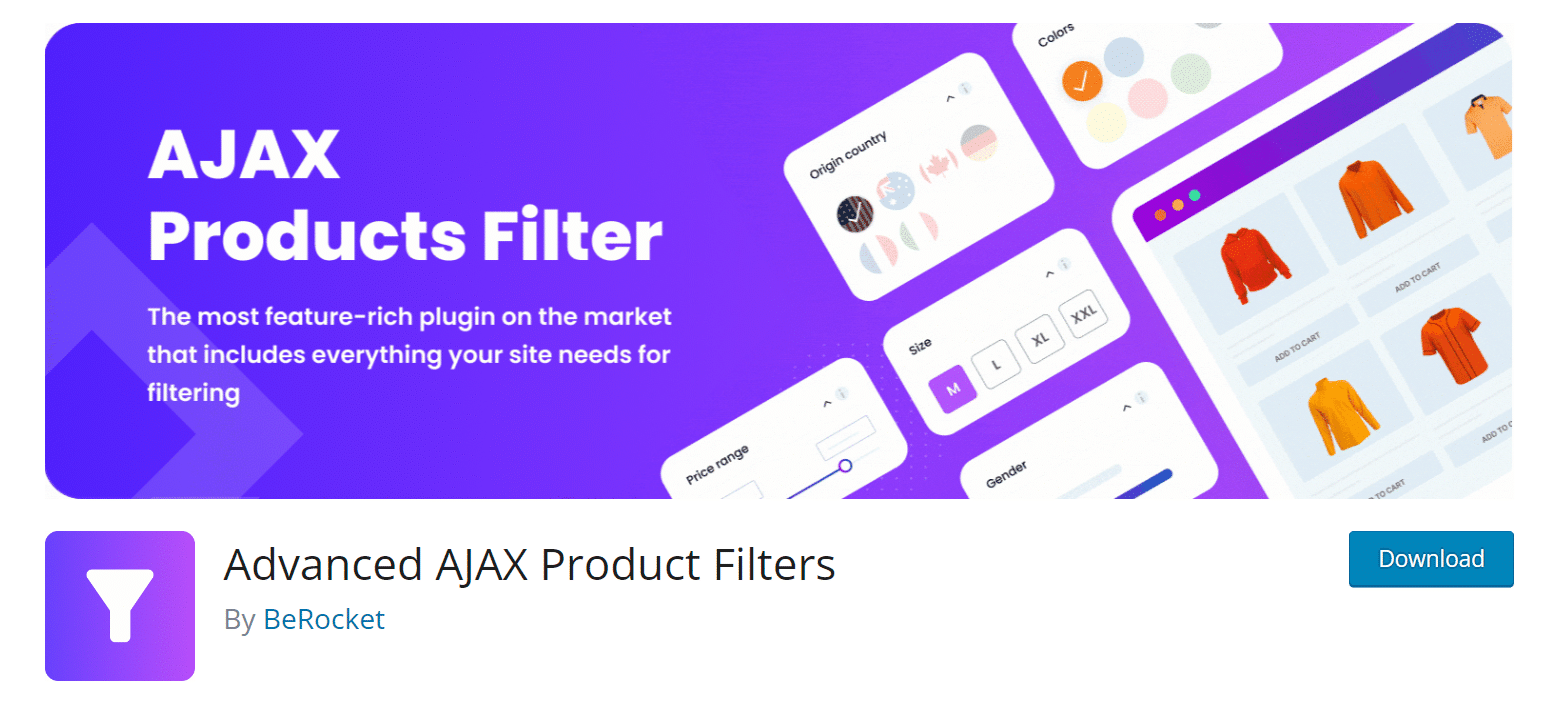 This is an easy-to-use plugin exclusively for WooCommerce that filters products by the most popular features. By default, the plugin offers filtering by categories, tags, ratings, and meta fields, as well as sorting by price, rating, and text search.