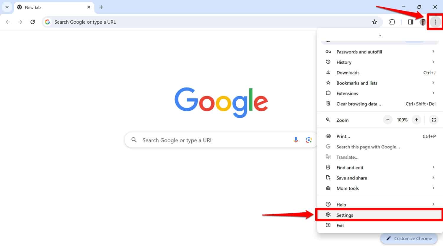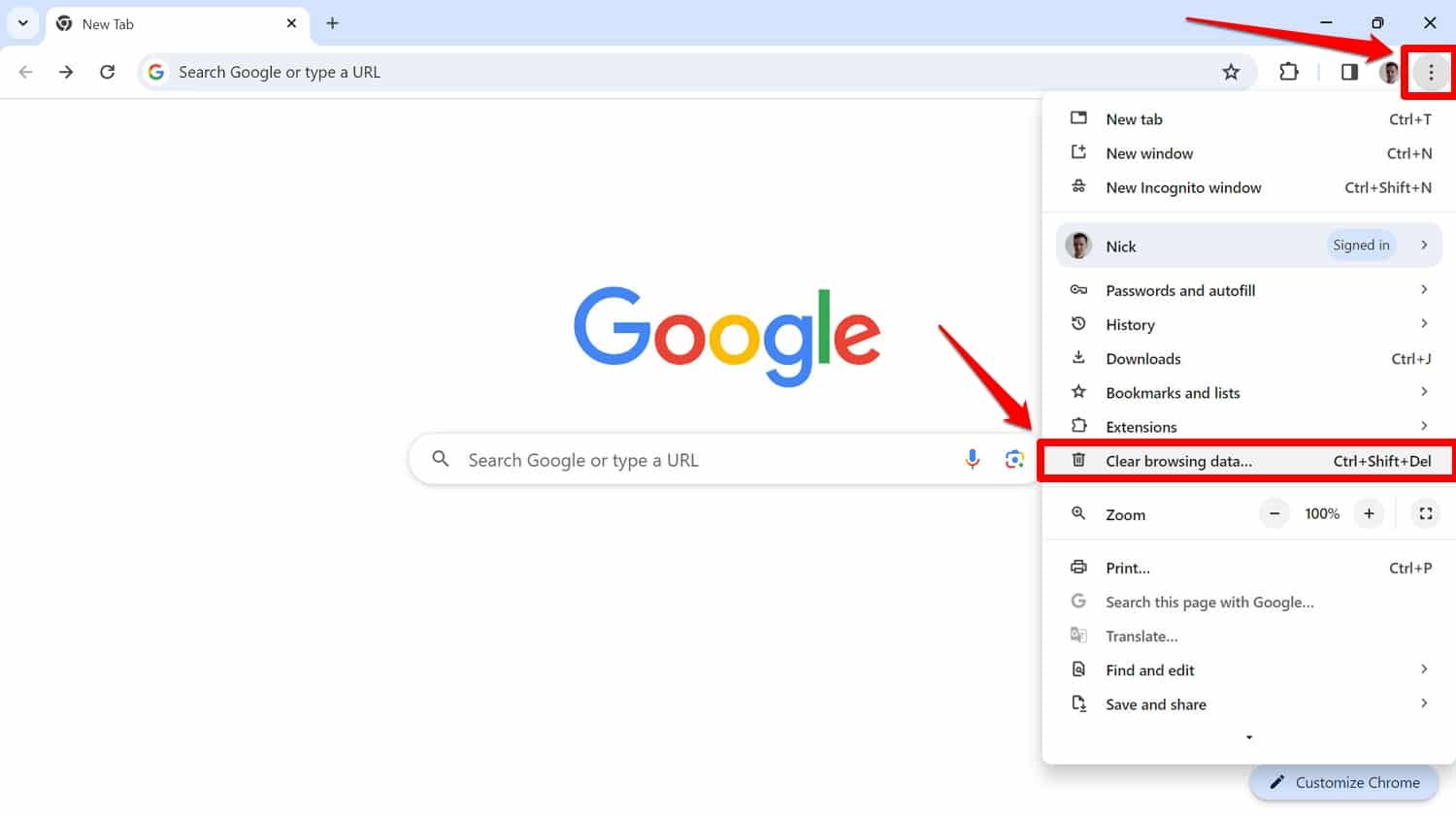 Clearing the cache in different browsers works very similarly. In Google Chrome, you first go to the main menu and then Clear Browsing Data…