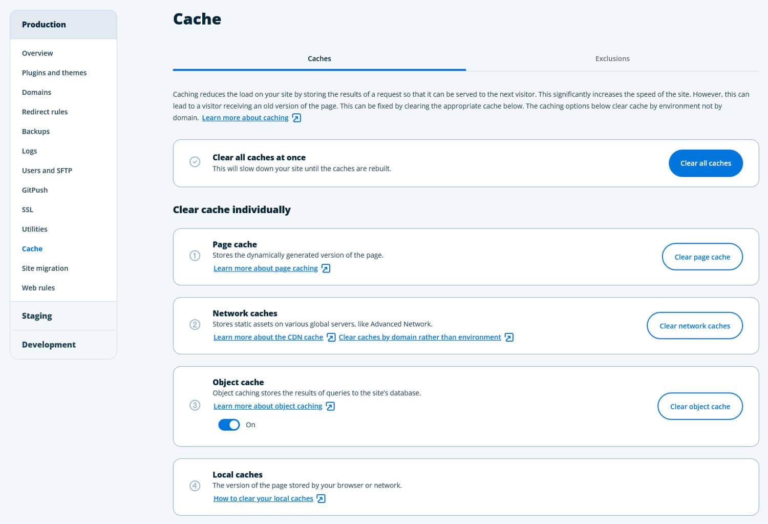 As mentioned, if your cache contains bad data, that can also be a problem. That’s why it’s important to clear all caches involved in displaying your WordPress website if you encounter the ERR_TOO_MANY_REDIRECTS message. Here’s how to do that.