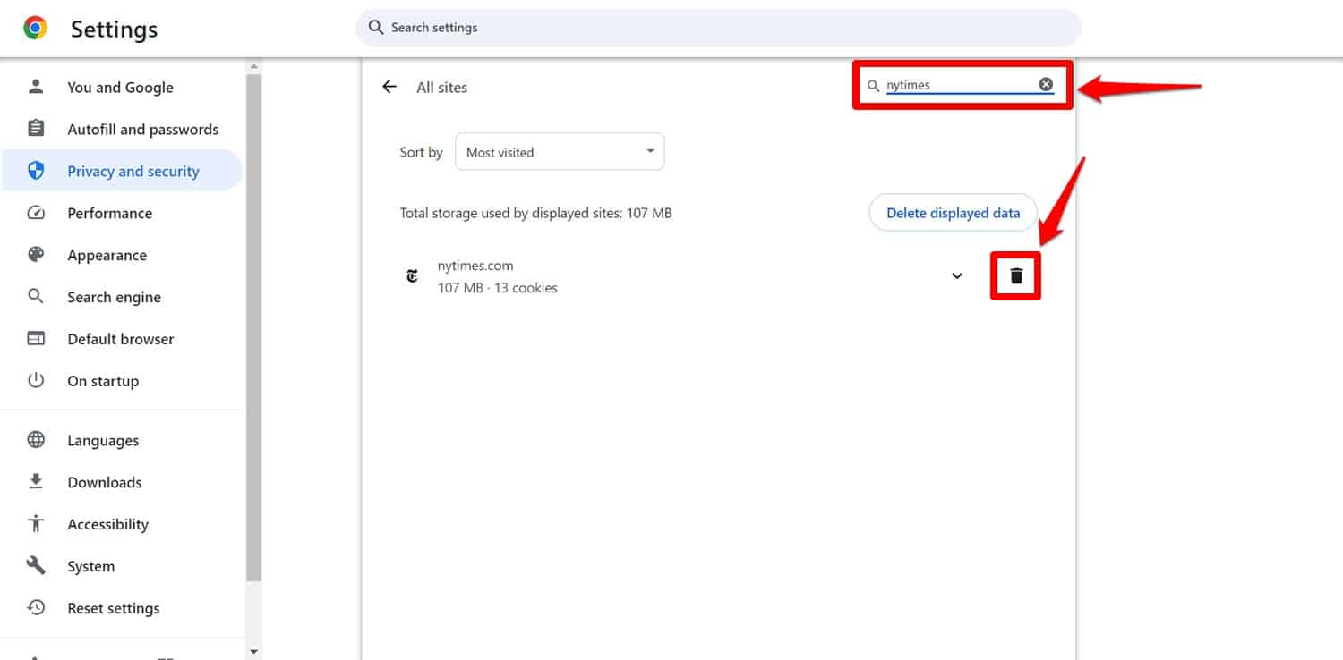 From here, access the problematic URL and see if it has any effect. If it doesn’t, here’s how to delete cookies for a single website in Google Chrome: