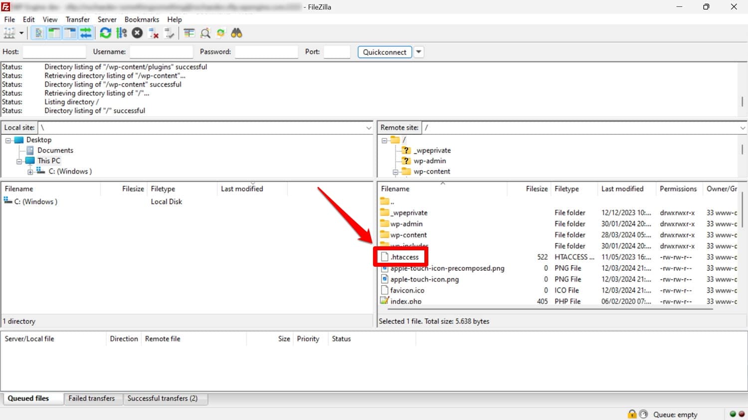 It’s hidden by default, so you might have to toggle a setting in your FTP client to make it visible.