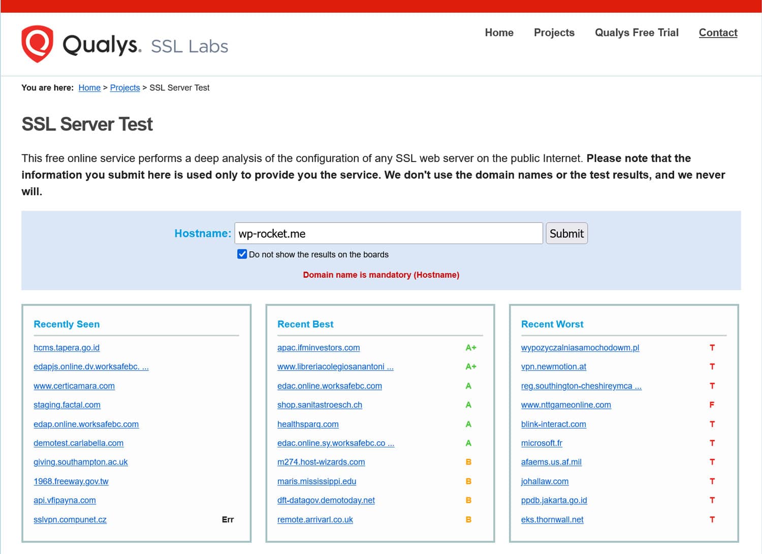In that case, you can use the Qualys SSL server test to see whether your SSL protocol is the culprit. Just enter your URL at the top and run the analysis.