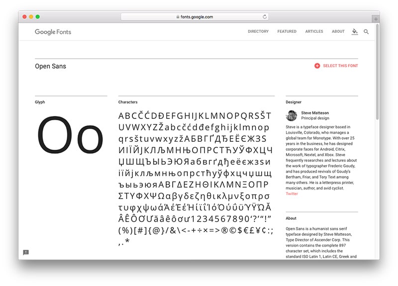 Open Sans contains hundreds of glyphs.