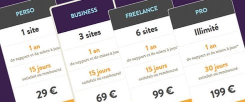 Il n’y avait pas d’intermédiaire possible entre une licence business pour 3 sites et une licence professionnelle (illimité). Cela sera désormais chose faite avec la licence freelance pour 6 sites au tarif de 99 €.
